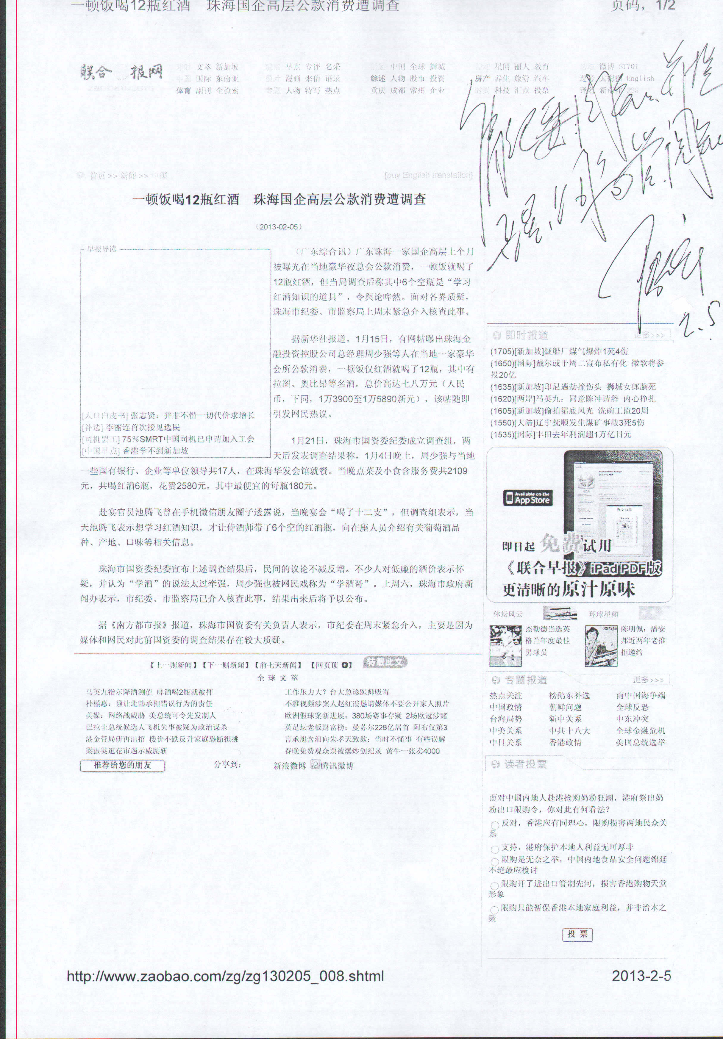 陸金龍董事長對(duì)網(wǎng)載“珠海國企高層公款消費(fèi)”作出批示,提醒公司高管引以為戒2月5日聯(lián)合早報(bào)網(wǎng)...