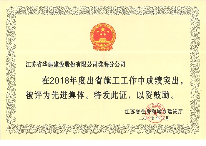 公司獲評(píng)2018年度江蘇出省施工先進(jìn)集體