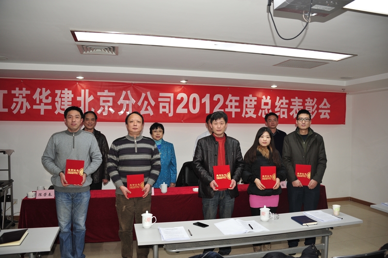 15下午,北京公司隆重召開2012年度總結表彰會。陳榮春總經理在會上作了《加速轉型升級 加大市場開拓 奮力推進北京區域市場新格局》的工作報告,報告對2012年北京區域公司的工作做了全面回顧和總結,并對下一階段工作作了部署。2012年北京公司上下多方拓展經營渠道,努力擴規模保增量,積極探索發展轉型,取得一定成績。市場開拓穩步開展,經營渠道著力拓寬。在竭力穩固傳統市場的同時,還積極拓寬渠道,謀劃發展轉型,參與兩個房產項目的運作,通過兩個直管項目的合作,努力探尋新的經營模式;技術質量成果斐然,創優樹牌全力推進。1項工程獲得北京市建筑長城杯金質獎(本年度北京市建筑長城杯金質獎住宅工程共評出7項),3項工程獲得北京市結構長城杯銀質獎,數谷大廈獲得河北省結構優質工程獎,同時還被評為秦皇島市建筑節能示范工程獎、秦皇島市建筑節能十佳項目,另有3項工程獲得呼市青山杯、青城杯。另外,金域華府007地塊項目、萬科藍山5#樓精裝修工程在分別獲萬科北方區域檢查評比中獲得第一名。QC活動方面, QC小組成果《改進預埋方法,提高懸挑腳手架預埋件的預埋合格率》獲2012年度全國工程建設優秀質量管理小組二等獎。施工工法方面,公司編制的《SF防水保溫一體化屋面施工工法》被評為2012年江蘇省省級工法。優秀項目管理成果方面,公司結合項目案例組織編寫了“集成技術改進,鑄就管理提升”項目管理成果參加第七屆全國建設工程優秀項目管理成果獎評比活動,榮獲一等獎。學術交流方面,公司選送了14篇論文參加了2011年度揚州市施工學術論文交流會,其中3篇獲二等獎、6篇獲三等獎,5篇獲交流獎;在此基礎上選送了3篇參加了江蘇省施工學術論文交流會;另外,有8篇論文在省級以上期刊發表。安全生產一著不讓,現場管理措施有力。去年公司還對管理人員進行安全生產資格培訓及考核300余人次、一線工人安全教育及考核約5000人次,組織在京項目部對在場施工的2000余農民工進行了普法維權和《職業病防治法》宣傳教育,并組織300人次參加了北京市安康杯組委會的統一競賽。去年公司共有2項工程獲北京市文明安全工地,1項獲天津市市級文明工地工程,1項工程獲呼和浩特地區質量安全標準化工地,另外,秦皇島數谷大廈已確定為河北省安全文明工地。陳總還對當前面臨的困難和挑戰進行了分析,并指出下一階段要著重抓幾個方面:一是積極調整經營思路,加大經營力度,努力在激烈的市場競爭中尋求發展空間。二是要努力提高管理水平,加大投入力度,不斷增強發展后勁和市場競爭力。三是要積極謀劃轉型,拓寬經營渠道,主動策應市場形勢的變化。四是要注重高層次人才培養,形成良好的用人機制,滿足企業發展需求。