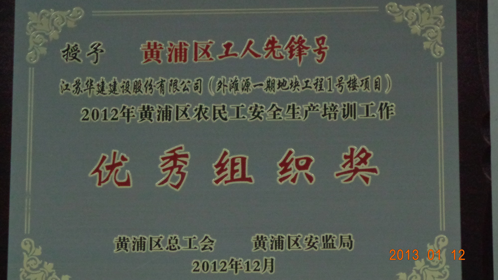 上海洛克外灘源一期被授予“黃浦區(qū)工人先鋒號” 時間:2013-01-12 6534 日前,在上海黃浦區(qū)總工會、黃浦區(qū)安監(jiān)局聯(lián)合組織的“工人先鋒號”評比中,由我公司組建的上海洛克外舉灘源一期被授予黃浦區(qū)工人先鋒號,同時還被授予2012黃浦區(qū)農(nóng)民工安全生產(chǎn)培訓(xùn)工作優(yōu)秀組織獎,周群利同志被評為2012年黃浦區(qū)農(nóng)民工安全生產(chǎn)培訓(xùn)工作先進個人。