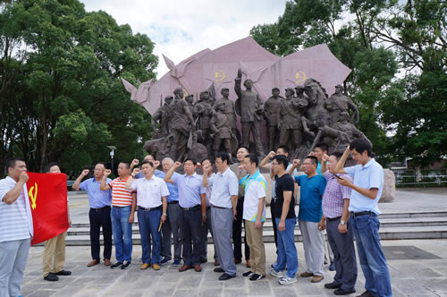 上海分公司黨總支組織開展“紅色之旅”教育 時(shí)間:2016-08-16 4097 8月12日,上海分公司黨總支組織部分黨員干部和入黨積極分子共18人,赴愛國主義教育基地福建古田開展“促兩學(xué)一做,走紅色之旅”教育活動(dòng),在“主席園”向毛主席像敬獻(xiàn)花籃,在“豐碑軍魂”雕像前面對(duì)黨旗重溫入黨誓詞,還仔細(xì)參觀古田會(huì)議地址和紀(jì)念館,回顧緬懷了老一輩無產(chǎn)階級(jí)革命家的不朽事跡。大家牢記“古田會(huì)議永放光芒”精神,紛紛表示:“不忘初心,繼續(xù)前行”。