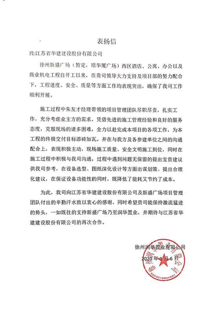 公司承建項(xiàng)目受甲方表?yè)P(yáng)