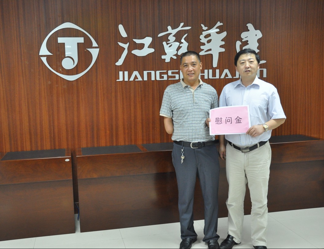 惠州區域公司慰問傷殘員工 時間:2013-08-06 3777 夏日炎炎,酷暑難耐。江蘇華建副總經理、惠州分公司總經理華恒榮率分公司工會親切慰問了在惠州分公司第九工程處工作的傷殘員工居家應(居家應90年代在寶應工作期間,不慎失去了右膀,被定為三級傷殘)。慰問中,華總詳細了解他的生活、工作情況,并向他發放慰問金,同時要求九處在工作、生活上給予一定的關心。居家應感謝組織對他的關心,表示身殘志不殘,更加積極努力的工作,不辜負組織的期望。惠州分公司總會計師高正金,分公司工會主席王健陪同慰問。