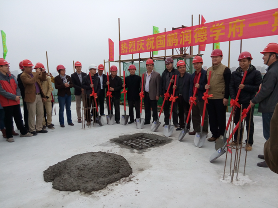 新年大吉——國鵬潤德學府順利封頂 時間:2015-01-27 2990 1月26日上午,由惠州公司承建的國鵬潤德學府一期工程在熱烈喜慶的氣氛中順利封頂。廣東國鵬集團伍貴廉董事長、傅強總經理、沈總、鄭總等領導參加儀式,公司總工程師龐文榮、九處主任周才富及項目部管理人員參加了封頂儀式。 國鵬潤德學府位于仲愷大道與和暢六路交匯處,緊鄰仲愷總部經濟大廈。項目占地約3.3萬平米,總建筑面積約15.6萬平米,分兩期開發,共規劃住宅7棟。一期工程于2014年4月15日開始施工,總建筑面積72600平方米,由3棟塔樓組成,分別為29層、29層、30層,最高96.05米。項目外立面現代簡約時尚,園林舒適優雅,配有幼兒園,小學,商業街等配套設施,是國鵬集團在仲愷中心地區開發的地標建筑,未來將打造成學位府邸、人文社區。