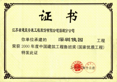 深圳俊園獲98年深圳市文明工地,99年獲江蘇省優(yōu)質(zhì)工程金獎(jiǎng),同年被授江蘇省建筑業(yè)新技術(shù)應(yīng)用示范工程,2000年獲江蘇省“揚(yáng)子杯”獎(jiǎng),深圳市優(yōu)質(zhì)樣板工程第一名和金牛獎(jiǎng)及全國建筑業(yè)最高獎(jiǎng)“魯班獎(jiǎng)”。
