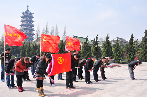 總部開展祭掃革命烈士墓活動 時間:2013-04-03 4198 4月3日,總部機關黨支部和團委聯合開展祭掃革命烈士墓活動,總部機關、華建置業20余名同志參加。紀委副書記、黨辦主任陳緒寶主持活動,副總經理兼總工程師程杰帶領大家向烈士紀念碑三鞠躬,并敬獻了鮮花,隨后大家共同參觀了烈士英雄事跡展。