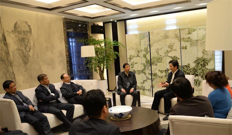 俞書記在陸董事長陪同下饒有興趣地參觀了公司企業展示中心,對公司的運營情況進行了詳細詢問,對華建近年來的發展和取得的新成就給予了高度評價。在會客廳,陸董事長向俞書記簡要匯報了公司發展運行、轉型升級等方面的情況。俞書記和大家分析了當前建筑業所面臨的形勢以及房地產市場對建筑業的影響,他希望公司要不斷創新,精益求精,在綠色環保、產業化等新領域多下工夫,創造更加優異的成績,為江蘇建筑業做大做強作出積極的貢獻。