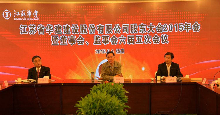 揚州市政府分管建筑業副市長聞道才到會并致辭。他首先代表市政府對公司股東大會的召開表示祝賀。他指出2014年揚州建筑業發展速度、發展質量都取得長足進步,作為揚州建筑業的排頭兵,領頭雁,華建很好的起到了標桿引領作用,為揚州建筑業打響品牌,為地方經濟的發展都作出了巨大貢獻。華建經過這幾年的發展,核心競爭力明顯強,綜合效益穩步提升,管控水平不斷提高,企業在市場競爭中積極完善體制,加強隊伍建設,凝聚力、影響力不斷增強。接下來,聞市長從宏觀經濟形勢入手分析了當前新常態下企業面臨的挑戰和機遇。對下一步的發展聞市長提出幾點建議,一是保持清醒頭腦,重大決策要更嚴謹科學,持續穩定發展;二是在資質管理上進一步完善提升,認真對待住建部專項治理行動,深刻領會,措施到位;三是不斷開拓市場,把握好一帶一路和區域板塊發展重要契機;四是夯實主業基礎上,在重大基礎設施方面(路橋、管網、園林等)有所拓展;五是機制不斷創新,管理不斷強化,制度建設更人性化、科學化、嚴謹化;六是打造獨特的企業文化,用文化凝聚人,不斷放大企業影響力、競爭力,使華建成為百年企業。