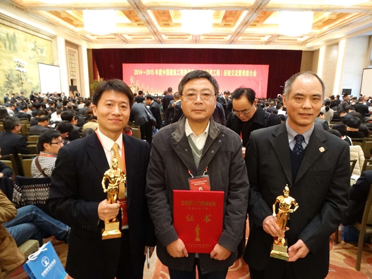 11月17日,2014~2015年度中國(guó)建設(shè)工程魯班獎(jiǎng)?lì)C獎(jiǎng)大會(huì)在北京釣魚臺(tái)國(guó)賓館舉行,會(huì)上對(duì)2014~2015年度魯班獎(jiǎng)工程進(jìn)行了隆重表彰,江蘇華建再次書寫揚(yáng)州建筑業(yè)的傳奇故事:近四年來,為揚(yáng)城捧回五尊魯班獎(jiǎng);本次表彰又在同一評(píng)獎(jiǎng)年度有兩項(xiàng)工程載入中國(guó)建設(shè)工程質(zhì)量最高獎(jiǎng)的史冊(cè),江蘇華建累計(jì)獲得中國(guó)建設(shè)工程界的“奧斯卡”——魯班獎(jiǎng)已達(dá)21項(xiàng),為揚(yáng)州建筑之鄉(xiāng)再揚(yáng)美名,也為“建筑神兵”的美譽(yù)再添新績(jī)。公司副董事長(zhǎng)、副總經(jīng)理陳榮春代表公司上臺(tái)領(lǐng)獎(jiǎng),公司副董事長(zhǎng)、總經(jīng)理宗有農(nóng)在大會(huì)現(xiàn)場(chǎng)接受了揚(yáng)州電視臺(tái)、揚(yáng)州日?qǐng)?bào)記者專訪。