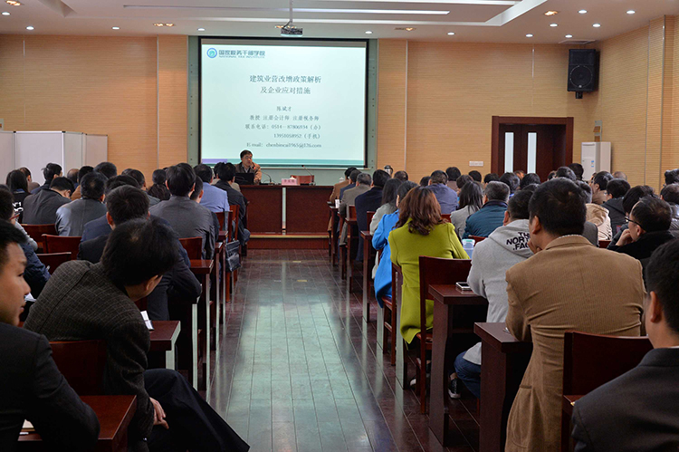 公司開展營改增試點業務培訓 時間:2016-04-11 3511 4月5日和6日,公司財務部和華建學院聯合組織的營改增試點業務培訓分別在揚州和北京開班。公司總部、北京和上海區域公司、駐揚分支機構及公司聯盟企業的主要負責人、經營和財務工作分管領導及有關人員共計210余人參加了培訓。 此次培訓特邀市國家稅務學院陳斌才教授主講。陳教授就建筑業營改增政策及企業應對措施作了專業分析和講解,并與參培人員進行了互動交流,使參培人員對建筑業營改增有關政策有了更深刻的理解和認識,達到了預期效果。 按照培訓工作計劃,本月中旬還將在深圳和海南兩地組織區域公司有關人員培訓。