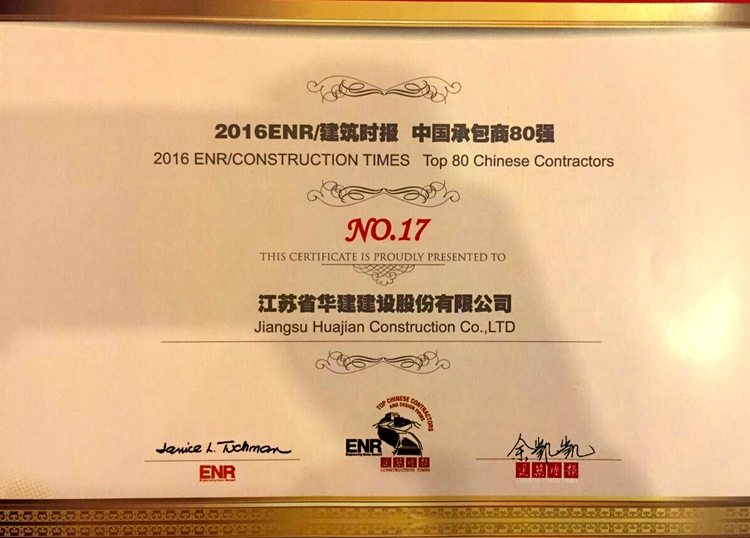 11月25日,由美國《工程新聞記錄》(ENR)和中國《建筑時報》兩家權威媒體共同主辦的 “中國承包商80強和工程設計企業(yè)60強”頒獎典禮在福建福州隆重舉行。江蘇華建再次成功入選中國承包商80強榜單,位列第17。至此,江蘇華建自2004年活動開展以來排名持續(xù)前移,并已連續(xù)13年榜上有名。