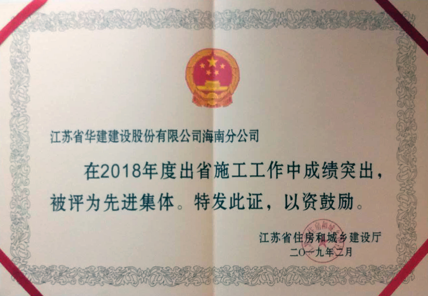 海南公司喜獲江蘇出省施工多項(xiàng)榮譽(yù)