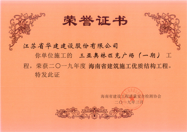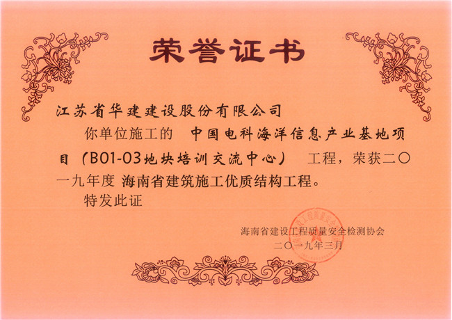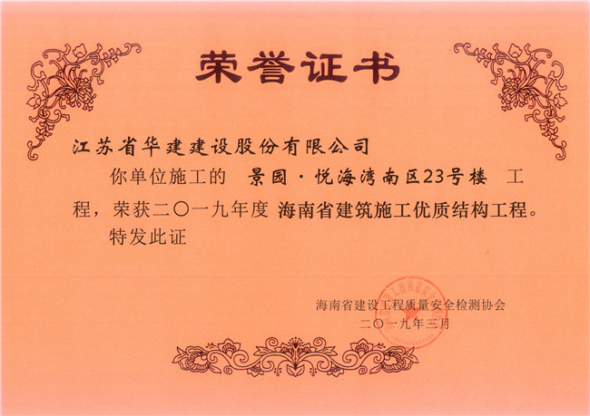近日,海南省建設(shè)工程質(zhì)量安全監(jiān)測協(xié)會發(fā)文表彰了一批2019年度上半年海南省建筑施工優(yōu)質(zhì)結(jié)構(gòu)工程,江蘇華建海南分公司承建的3個項目上榜,分別是:三亞奧林匹克廣場項目、中國電科海洋信息產(chǎn)業(yè)基地項目(B01-03地塊培訓(xùn)交流中心)項目、景園悅海灣二期南區(qū)23#樓項目。