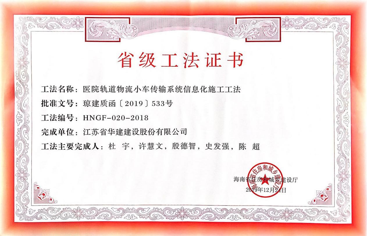 海南分公司新增1項省省級工法 時間:2020-01-10 3643 2019年12月24日,海南省住房和城鄉建設廳公布了2018年度海南省省級工法評審結果,我司《醫院軌道物流小車傳輸系統信息化施工工法》成功入選。