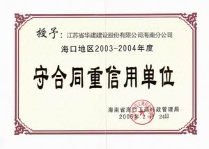 企業(yè)誠信榮譽 時間:2019-01-01 8798 2001-2002年度海口市守合同重信用 2003-2004年度??谑惺睾贤匦庞?/FONT> 2005-2006年度海口市守合同重信用 2002-2004年度海南省守合同重信用 2006年度全國守合同重信用1 2006年度全國守合同重信用2 2006年度全國守合同重信用3 2006年度全國守合同重信用4 2012年度海南省守合同重信用