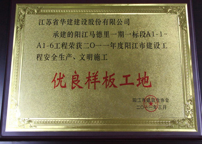2011陽江馬德里項目獲陽江市安全生產(chǎn)文明施工優(yōu)良樣板工地