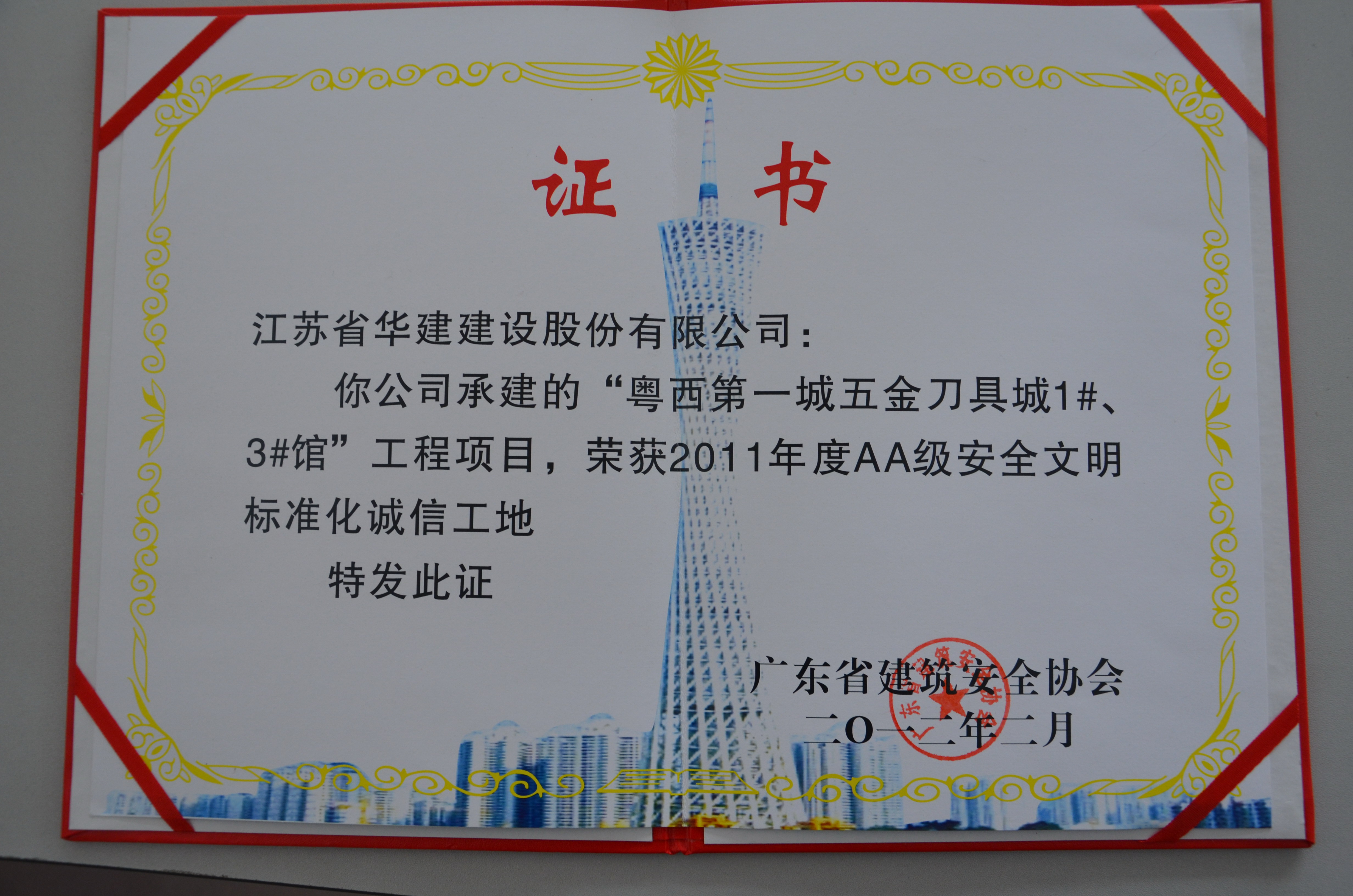 2012陽江五金刀剪城廣東省AA級安全文明標準化誠信工地
