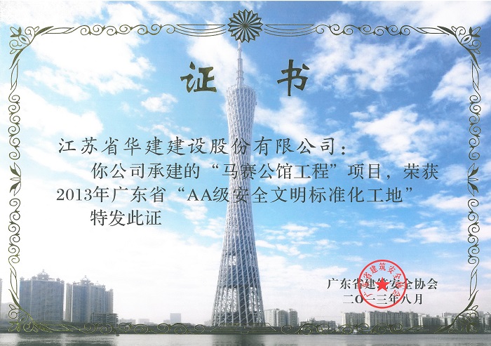2013年馬賽公館工程廣東省“AA級安全文明標準化工地”
