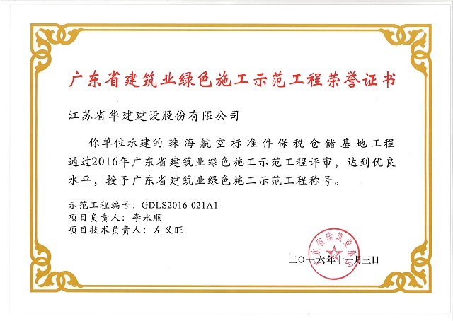 珠海航空標準件保稅倉儲基地工程 廣東省建筑業綠色施工示范工程