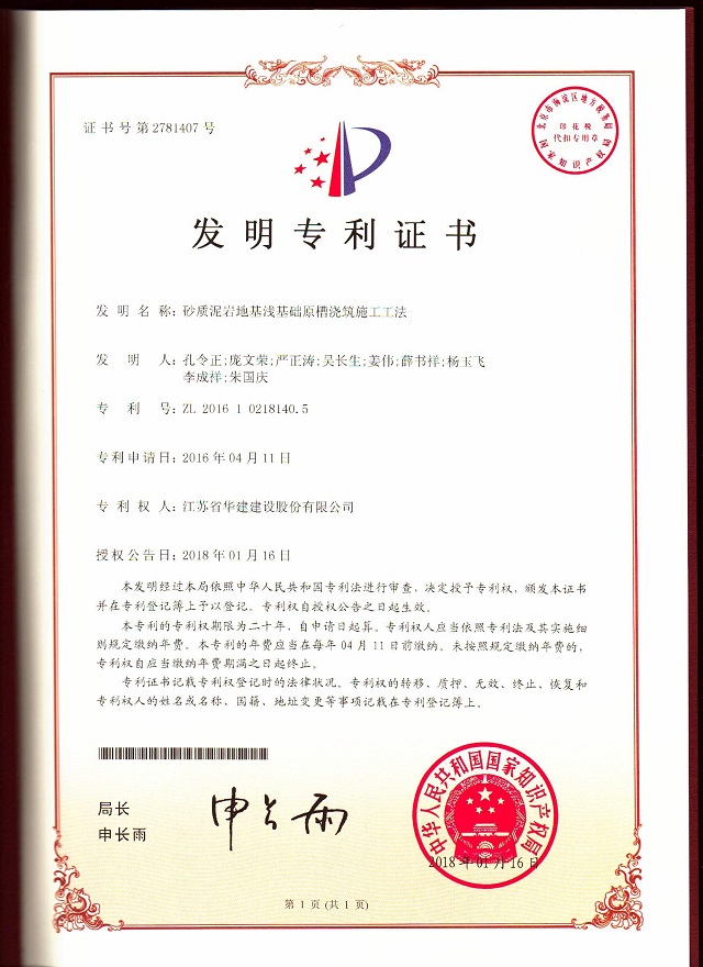 近日,從國(guó)家知識(shí)產(chǎn)權(quán)局傳來好消息,重慶分公司申報(bào)的技術(shù)成果《砂質(zhì)泥巖地基淺基礎(chǔ)原槽澆筑施工...