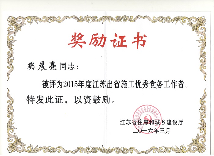 近日,重慶分公司被江蘇省住房和城鄉(xiāng)建設廳表彰為“2015年度江蘇出省施工先進企業(yè)”,重慶分...