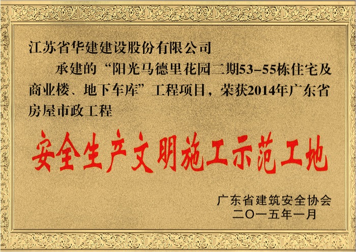 陽光馬德里二期工程榮獲2014年廣東省房屋市政工程安全生產文...