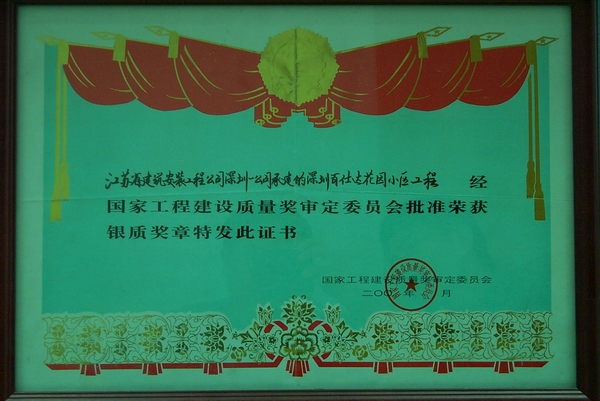 工程位于羅湖區(qū)太寧路,建筑高度15.9米至38.8米,10層/21幢、3層/2幢、5層/1幢,總建筑面積147031平米,1996年1月開工,1998年5月竣工。該工程基礎(chǔ)為樁基,上部為框架及框架剪力墻大板結(jié)構(gòu),隔墻為砼空心砌塊和粘土多孔磚、GRC板,外墻均貼瓷磚、局部噴真石漆及安裝玻璃幕墻,住宅設(shè)計(jì)有單層和復(fù)式層兩種,均設(shè)電梯。工程先后榮獲1998年度江蘇省外施工優(yōu)質(zhì)工程、1999年度江蘇省“揚(yáng)子杯”和1999年度國(guó)家優(yōu)質(zhì)工程銀獎(jiǎng)。