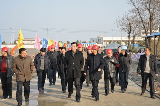 31下午,揚州市政府副市長陳揚,市政府副秘書長、市城鄉建設局局長王駿,以及市建設、規劃、國土、人防等部門負責人前往江蘇華建代建的揚州建設大廈暨規劃展覽館、市民中心項目工地現場視察調研,揚州建工控股公司、江蘇華建董事長陸金龍陪同視察,并向陳副市長一行簡要匯報了工程施工進展情況。陳副市長對建設大廈總體施工進展表示滿意,希望所有參建單位精心組織,科學管理,確保這一政府重點工程建設順利推進。同時他希望市各相關部門創新思維,主動服務,為建設大廈項目的施工建設提供支持。公司領導吳士茂、程杰等也一起陪同視察。