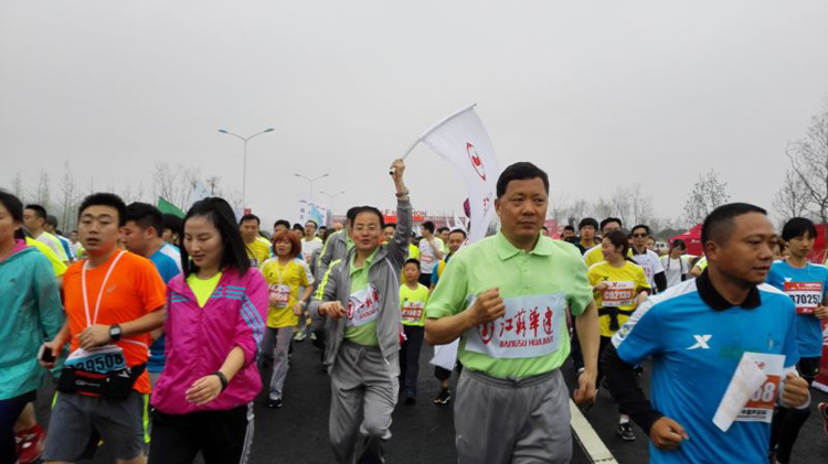 4月19日上午8點(diǎn),由中國體育協(xié)會(huì)、江蘇省體育局、揚(yáng)州市政府共同主辦的“中國聲谷杯”2015揚(yáng)州鑒真國際半程馬拉松賽暨全國半程馬拉松錦標(biāo)賽正式鳴槍開賽。江蘇華建愛跑團(tuán)與來自全球43個(gè)國家和地區(qū)的3.5萬選手共同沖出起跑線。