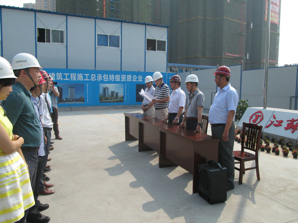為深入踐行群眾路線,切實服務項目建設,在活動中 “精神提振、工作提標、行政提效、服務提質”,6月9日上午,宜昌市住建委黨的群眾路線教育實踐活動“百名服務專員進項目”活動在我公司承建的興發廣場項目部正式啟動,市建設工程質量(安全)監督站等相關單位的六十余名服務專員參加了啟動儀式。