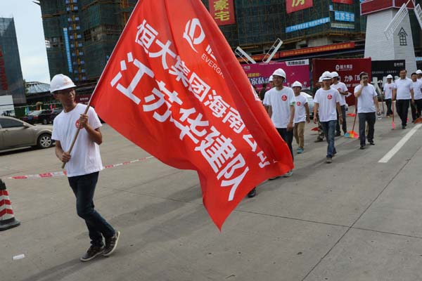 江蘇華建積極響應海口市“雙創”活動 時間:2015-09-01 2759 8月29日上午,海口市龍華區“雙創”啟動大會在我公司承建的恒大外灘中心項目現場召開,龍華區區委書記王東等領導出席啟動儀式,公司副總、海南分公司總經理王宏到會并做表態發言。 隨后,會場舉辦“我愛海口,力爭雙創”授旗儀式,并組織志愿者“自掃門前雪”,手拿掃把、簸箕等工具,將所屬衛生轄區打掃得干干凈凈,以實際行動來踐行“雙創”工作。