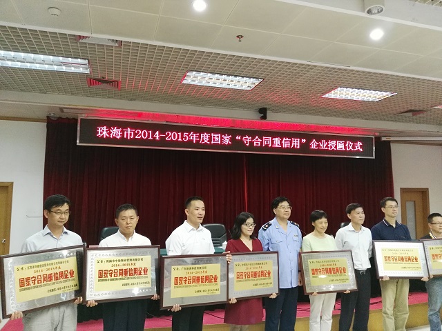珠海市工商局舉行國家“守合同重信用”企業授匾儀式 時間:2016-10-29 2790 2016年10月28日下午,珠海市工商行政管理局舉行2014—2015年度國家“守合同重信用”企業授匾儀式,珠海市副市長賀業民出席儀式,為獲評企業頒發國家“守合同重信用”企業牌匾、證書,并發表講話,向獲評的13家企業表示祝賀,希望大家繼續努力,像愛護眼睛一樣愛護企業誠信,為建設誠信珠海、誠信社會做出更多貢獻。 江蘇省華建建設股份有限公司珠海分公司已連續二十三年獲評廣東省“守合同重信用”企業稱號,并于2004年、2016年兩次獲評國家級“守合同重信用”企業稱號。