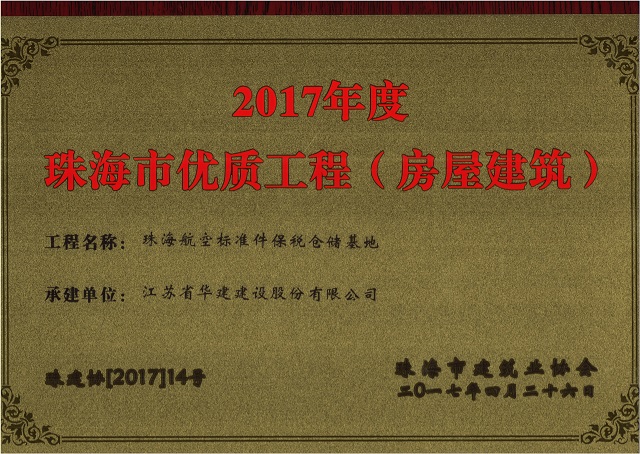 公司2項目獲評珠海市房屋建筑優(yōu)質(zhì)工程 時間:2017-05-16 3799 近日,珠海市建筑業(yè)協(xié)會發(fā)文公布2017年度珠海市優(yōu)質(zhì)工程名單,我司承建的珠海航空標(biāo)準(zhǔn)件保稅倉儲基地和丹田廣場二期的2個項目榜上有名。