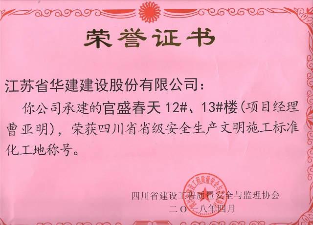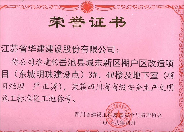 重慶分公司2項目獲評“四川省安全生產文明施工標準化工地” 時間:2018-04-20 2981 4月18日,重慶分公司項目創優再獲新成果,公司承建的岳池縣城東新區棚戶區改造項目(東城明珠建設點)3#、4#及地下室、官盛春天12#、13#樓被四川省建設工程質量安全與監理協會評為“四川省省級安全生產文明施工標準化工地”。至此,重慶分公司獲省級標化工地獎項已達3項。