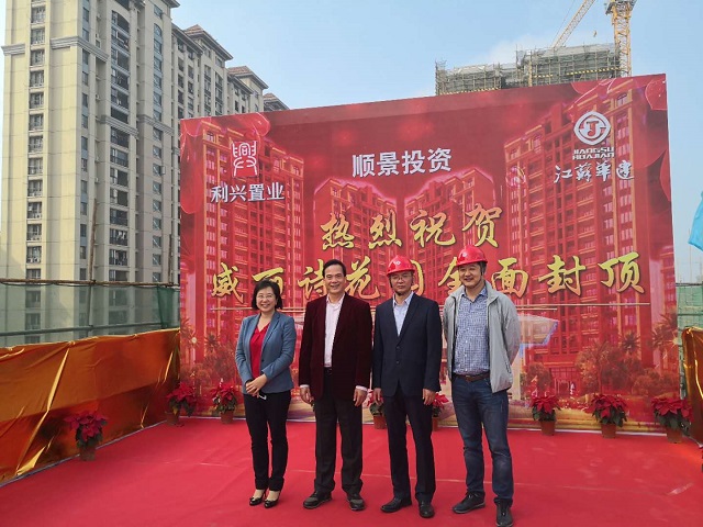 陽江威麗詩花園2期項目全面提前封頂 時間:2019-01-15 2529 2019年1月14日,第一項目部承擔施工任務的陽江威麗詩花園2期項目提前60天實現主體結構全面封頂。珠海利騰集團董事長黃金紅、總經理譚劍云,江蘇華建珠海區域公司總經理呂方達等參加封頂儀式。 威麗詩花園2期8~10棟住宅及地下室、12~15棟住宅及地下室、16棟住宅及地下室(含商業裙樓)、17~18棟住宅及地下室、19棟住宅及地下室(含商業裙樓)土建及水電安裝工程。該工程含商住樓共11棟,其中地下室建筑面積約34378平方米、地上建筑面積約127468平方米,總建筑面積約161847平方米。