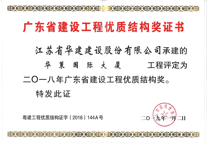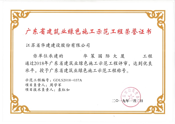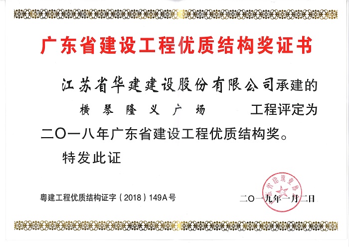 公司3個項目喜獲多項省級表彰 時間:2019-04-10 3518 近日,廣東省建筑業協會、廣東省建筑安全協會分別發文表彰了一批優質結構工程、綠色施工示范工程和安全文明工地,公司3個項目榮列榜單。其中,陽光馬德里、橫琴隆義廣場、華策國際大廈均被表彰為二〇一八年廣東省建設工程優質結構獎,華策國際大廈被授予廣東省建筑業綠色施工示范工程稱號,橫琴隆義廣場被評為2017年廣東省房屋市政工程安全生產文明施工示范工地。